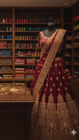 We use only high-grade **metallic Zari** and authentic stones that maintain their luster for decades.