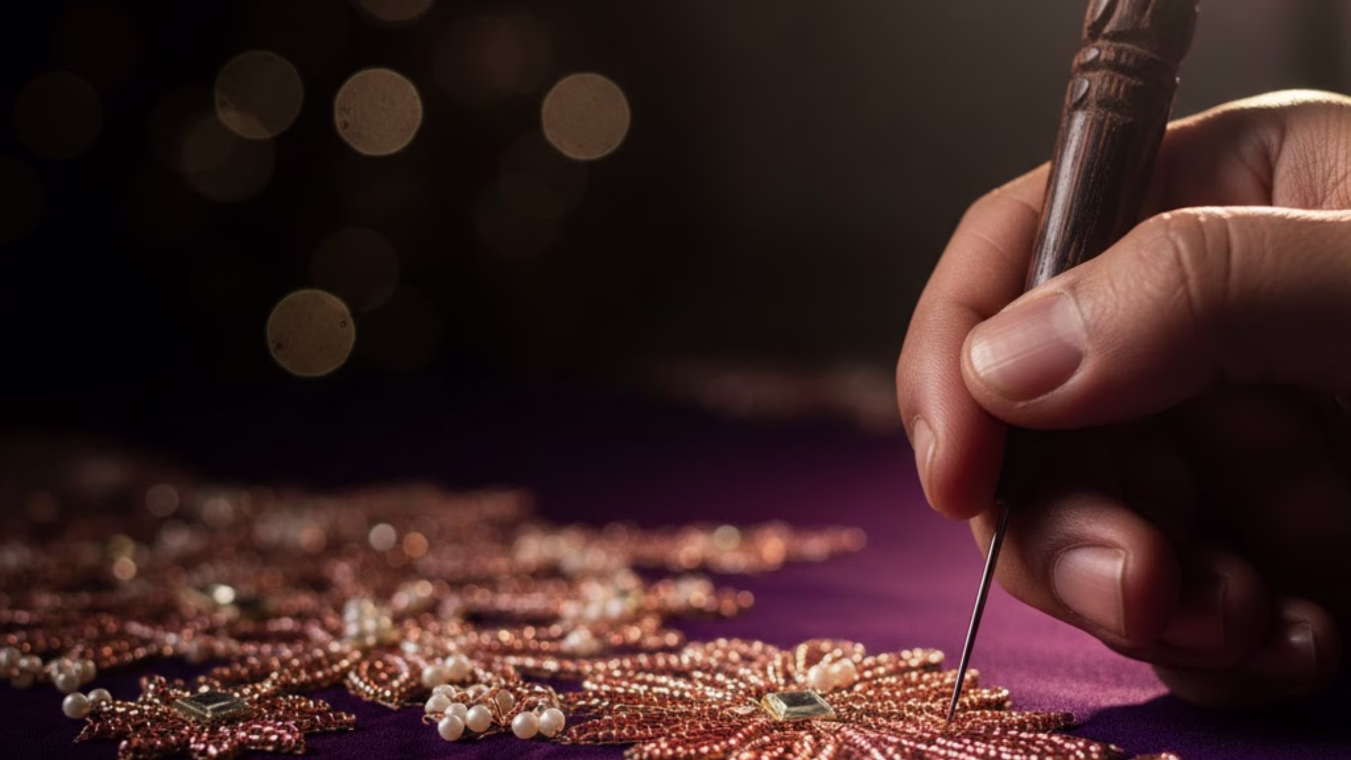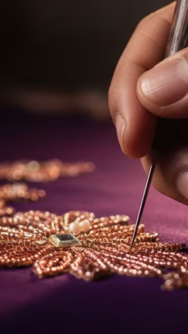 40-60 hours of Hand-Carved **Aari work** by master craftsmen. ๐