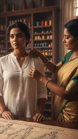 Silhouette Flow: Circumference calibration at the widest part of the lower body to ensure a smooth, pucker-free drape for Saree and Fish-cut styles.